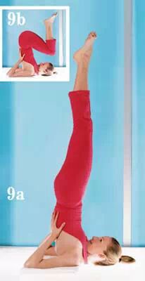 天花板,併攏雙腿,想像著你把能量從頭部傳到腳尖了,如果這個姿勢太累,就把腿彎曲一會兒,休息一下(如動作A)。如果在脖子和肩膀底下放條毛巾,會減少對這些部位的拉伸,感覺更舒適一些。