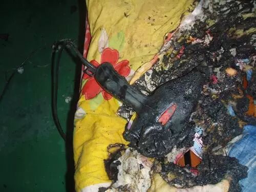 廣東中山東鳳鎮的張阿姨帶著3個小孫子在家。當晚,張阿姨先為大孫子洗澡,洗完後,張阿姨就把吹風機接好電打開放在客廳的沙發上,囑咐大孫子自行將頭髮吹乾,隨後走進浴室幫另外兩個孫子洗澡。豈料大孫子等張阿姨轉身進入浴室後,就玩手機去了,15分鐘後,張阿姨聞到焦糊味跑出客廳時發現沙發正在猛烈燃燒。經過調查人員勘察,認定火災原因為放置在沙發上的吹風機,對著緊貼的布藝沙發持續長時間高溫吹烘,造成布藝沙發受熱面積溫度過高而起火。