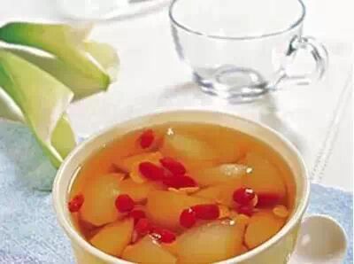 材料:人參、枸杞適量加水,用大火煮滾後,再用小火煮15-20分鐘,即可飲用。
