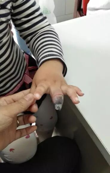 雯雯奶奶說,事發後,她曾多次帶著雯雯去有關醫療機構治療,被告知受傷手指末端骨頭尚好,只是肌肉已經壞死,並進行了一些傷口的消毒處理。「後來我們覺得不對頭,就送到這邊來看看了。」