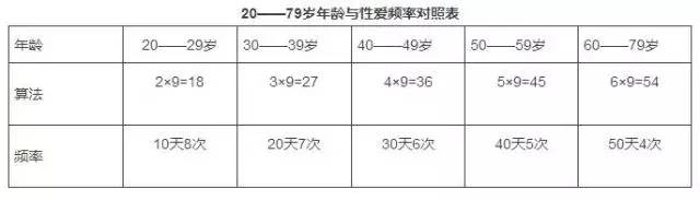 據美國《女性健康》雜誌報導,美國學者根據年齡因素對性能力的影響規律,總結出了一個「性愛頻率公式」——