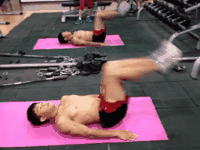 動作2:仰臥交叉手碰腳 10-20個