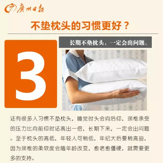 古人說“高枕無憂”,但現代醫學認為,枕頭太高或太低,對頸椎都不好,墊錯位置更會出問題,短期可能酸痛不舒服,長期則難逃挨刀大手術。還有很多人習慣不墊枕頭,睡覺時頭會向後仰,頸椎承受的壓力比向前仰時還高出一倍,長期下來,一定會出問題。