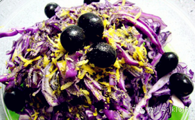 紫甘藍切成細絲,淋上兩大勺橄欖油