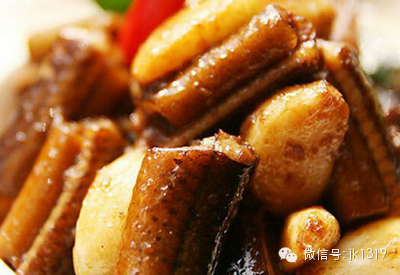 1.鱔魚去頭去內臟洗淨後,切成長約二指寬的段。剝出蒜瓣、蔥切同樣寬的段,姜略拍碎備用。鍋內放約3湯匙油,熱後,放下姜塊、蒜瓣煸炒至表面微黃