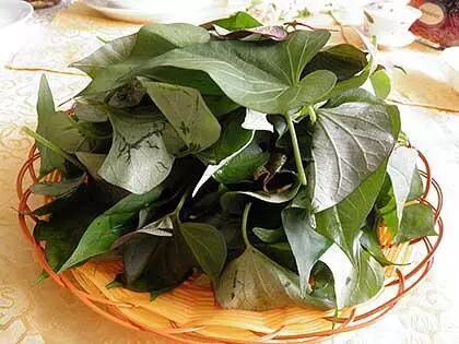 蕃薯葉又稱地瓜葉,過去多棄置不用,近年來因其誘人的保健功能而日益受到世人的青睞。香港人譽稱其為「蔬菜皇后」,日本人則推崇其為令人長壽的新型蔬菜。具有顯著的食療保健功能,是很有開發價值的保健長壽菜。