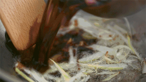 醬汁熬好後撈出香蔥、香菜和香葉放涼即可,喜歡吃辣的朋友還可加些辣椒末。
