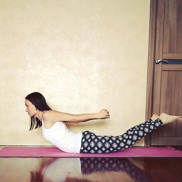 其中,Salabha,Locust,意為“蝗蟲”。它形容的是一個趴在地上的蝗蟲,蝗蟲的背部力量是絕對優秀的,所以練習蝗蟲式的目的就是獲得背部的力量。